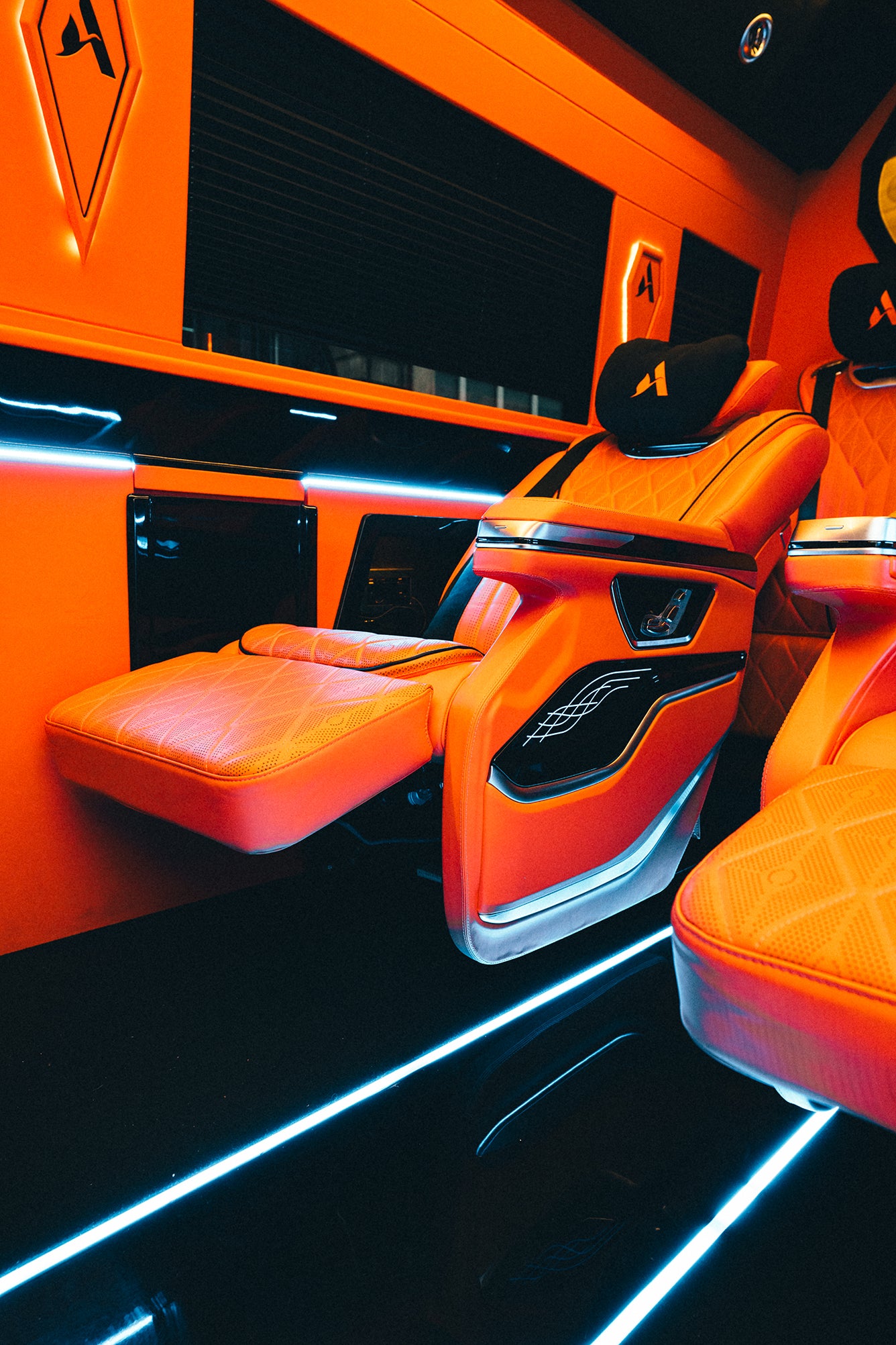 A custom-built, chauffeur-driven Sprinter finished in signature Hermès orange designed for those who expect privacy, precision, and prestige.