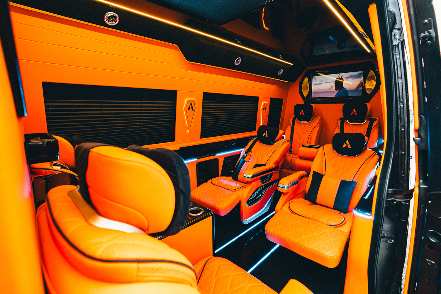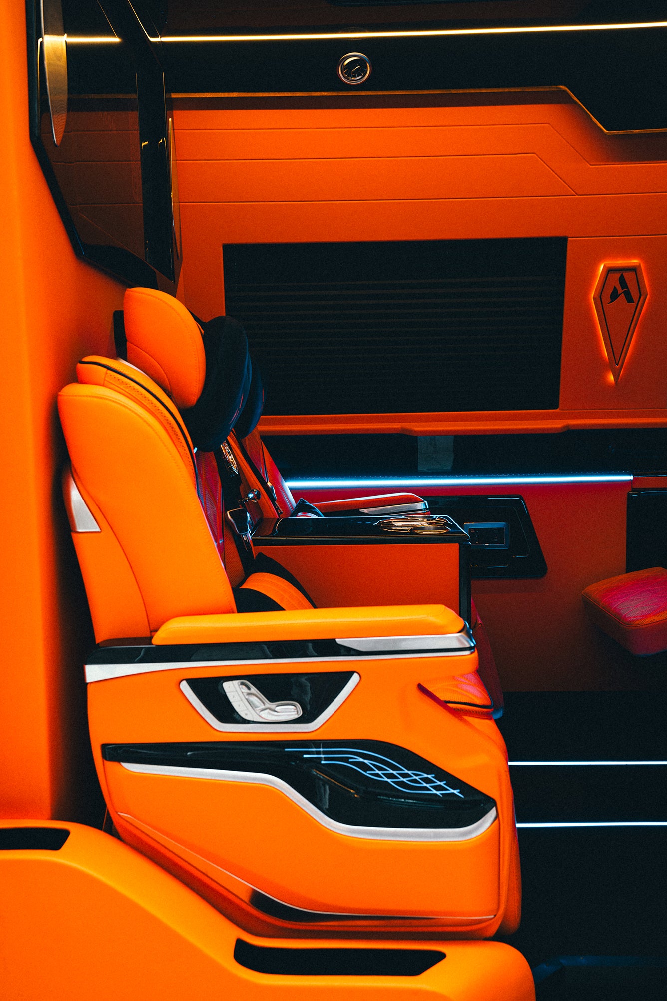 A custom-built, chauffeur-driven Sprinter finished in signature Hermès orange designed for those who expect privacy, precision, and prestige.